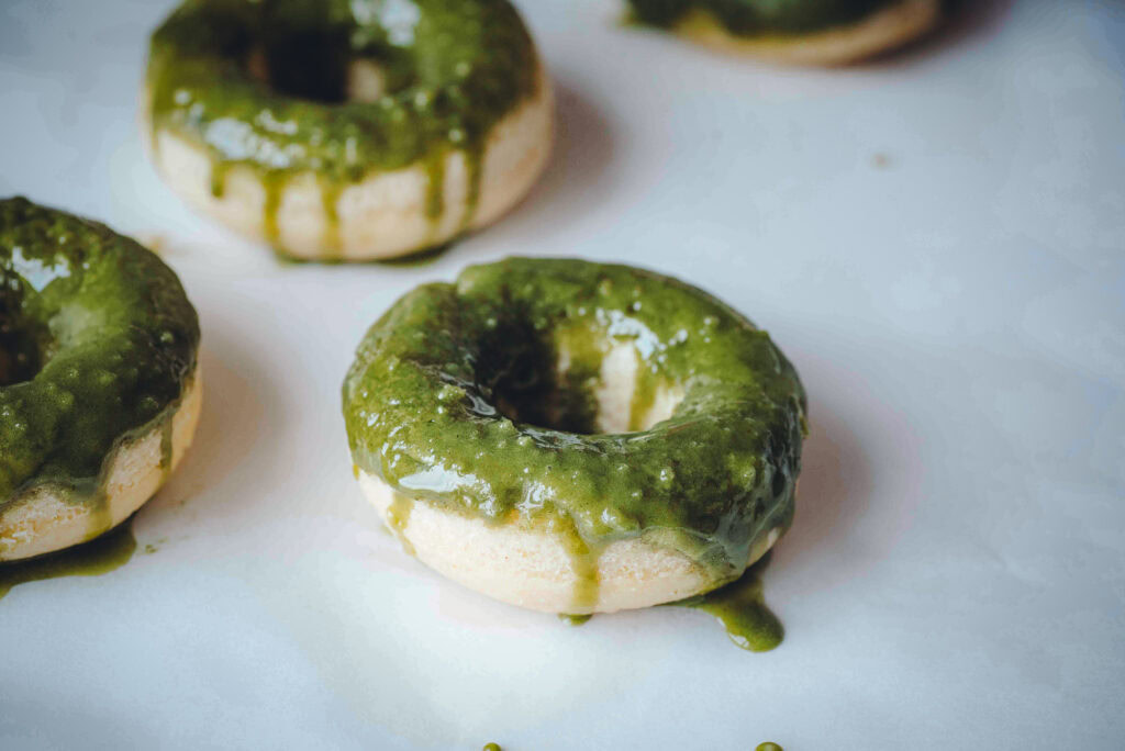 Une délicieuse recette de donuts sans friture dont le glaçage vert ne laissera personne indifférent. Vous pouvez bien entendu modifier l’intensité de la couleur verte en ajoutant plus ou moins de matcha, quitte à préparer des lots distincts avec des nuances de vert uniques.