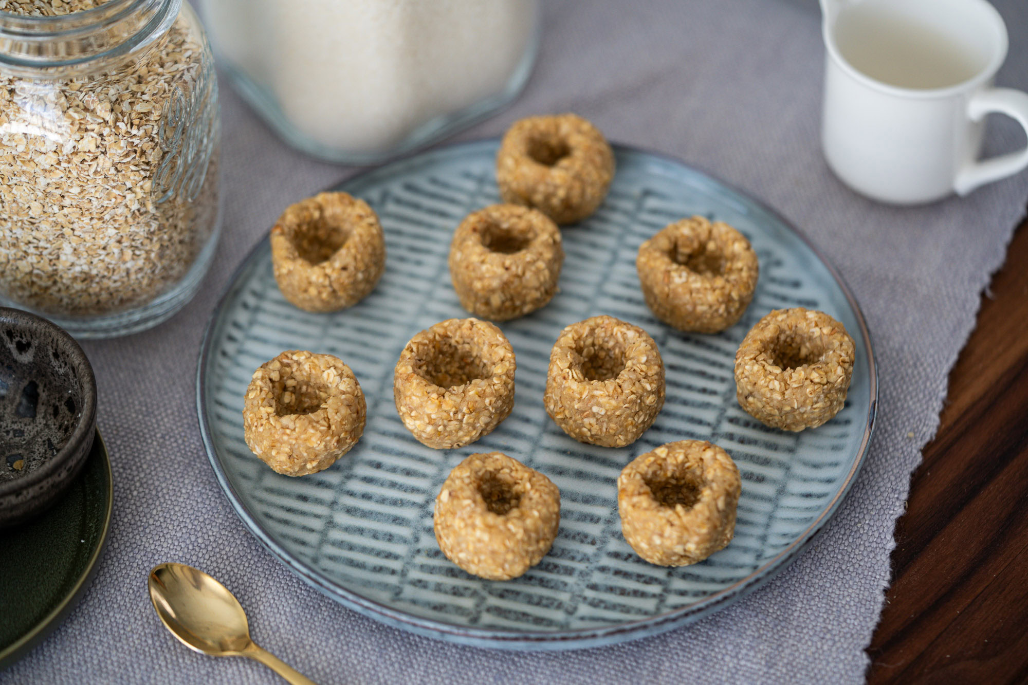 - Roulez dans chaque parts dans le creux de vos mains et formez un trou au centre de chaque boule avec votre doigt.
