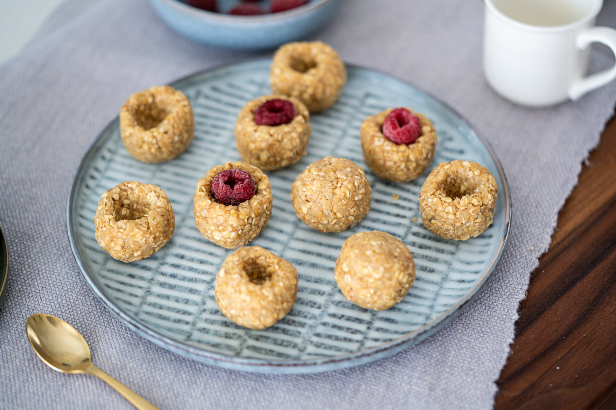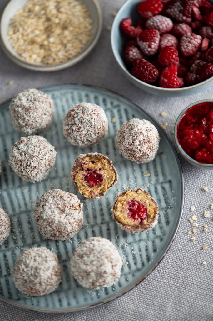 Accueil | Recettes | Desserts, snacks | Energy balls fourrées à la framboise