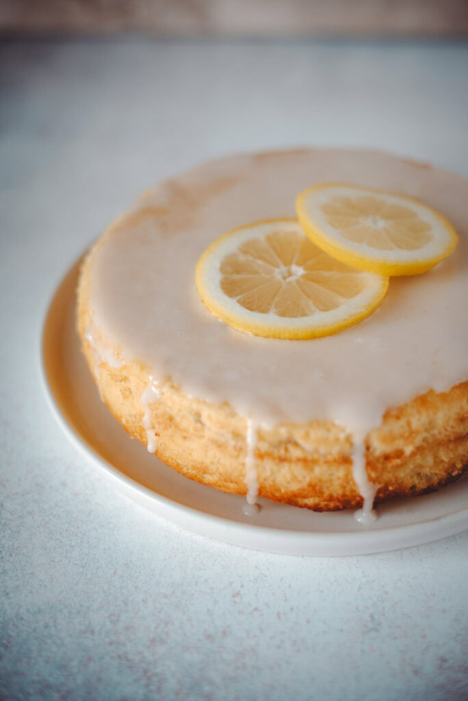 - Pendant ce temps, préparez le glaçage en mélangeant le sucre glace et le jus de citron. Versez le mélange sur le gâteau et laissez imbiber.