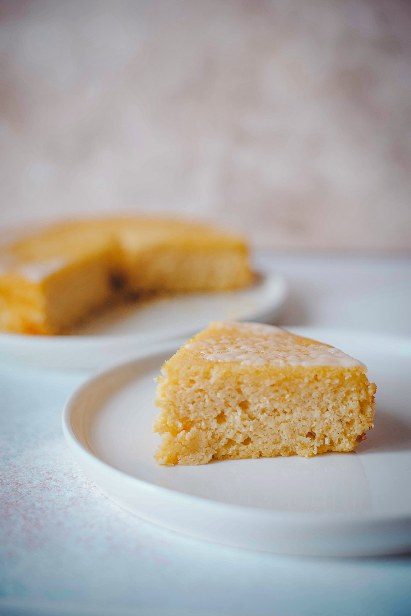 - Pendant ce temps, préparez le glaçage en mélangeant le sucre glace et le jus de citron. Versez le mélange sur le gâteau et laissez imbiber.