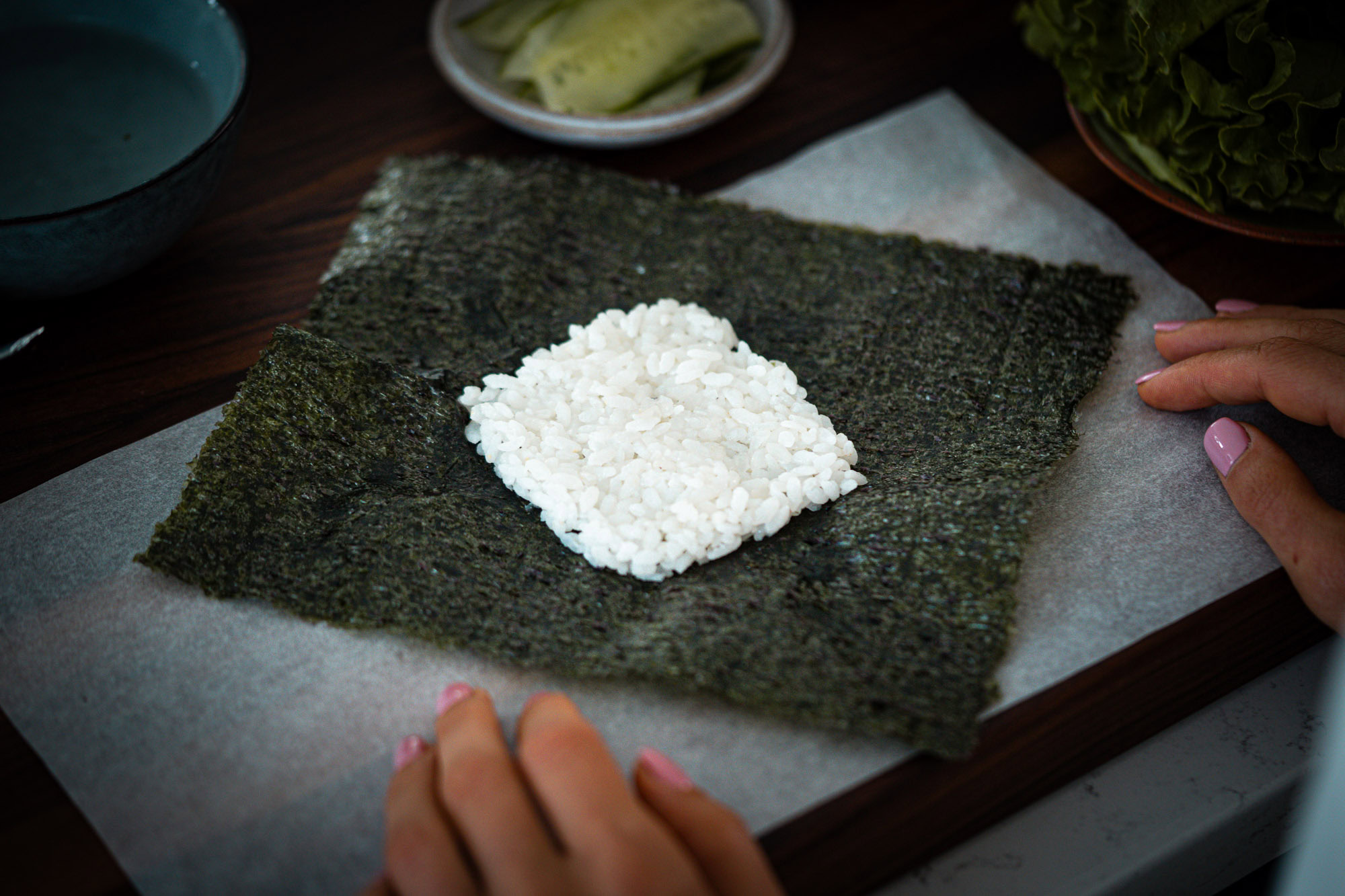 - Gardez un petit bol d’eau à portée de main pour humidifier vos doigts ça évite que le riz colle.