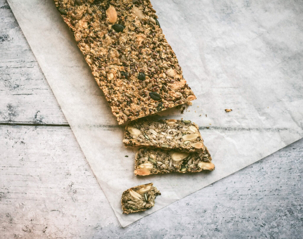 Ce pain sans farine blanche mise sur des ingrédients bruts comme les flocons et le son d’avoine pour une texture rustique et riche en fibres.