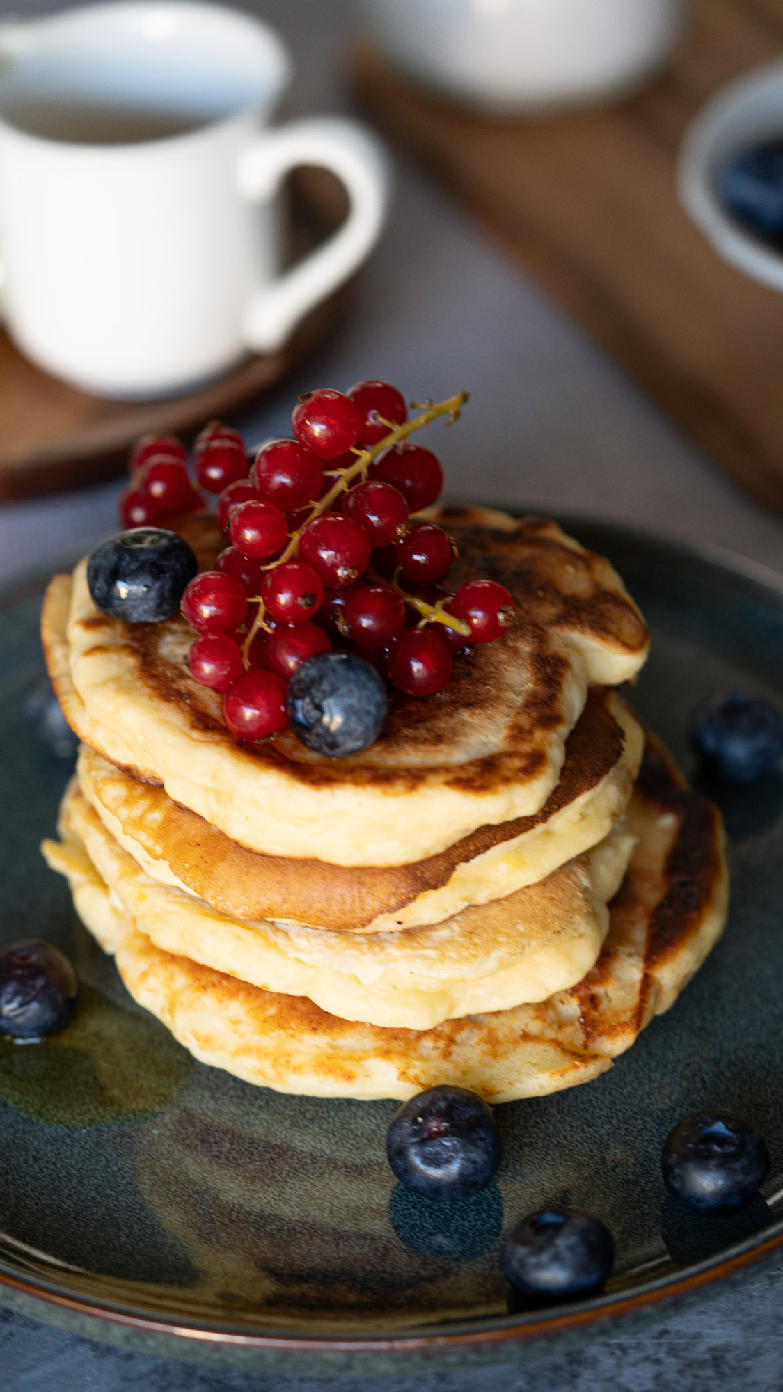 Grâce au fromage frais, ils contiennent naturellement plus de protéines que des pancakes classiques, tout en restant moelleux à cœur et dorés à l’extérieur.