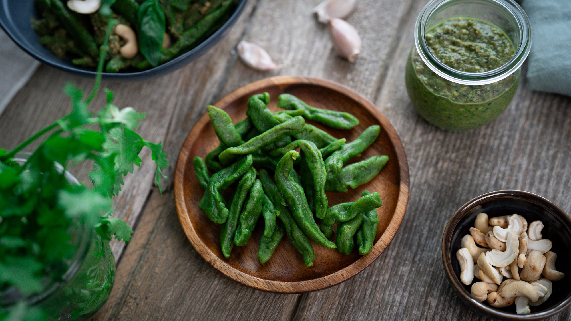 Pâtes aux épinards et sauce aux herbes