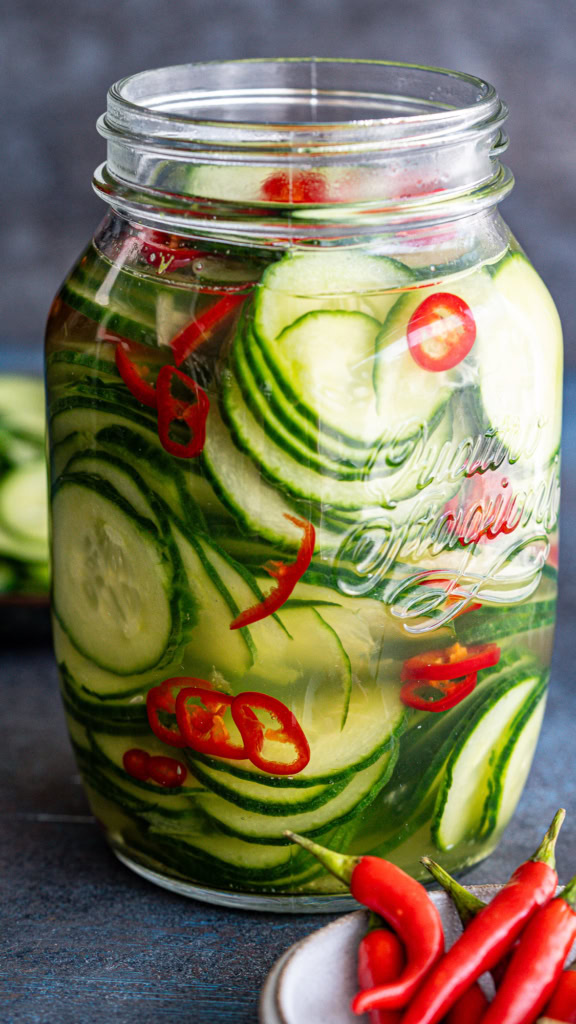 Acidulés, légèrement sucrés, et juste ce qu’il faut de piquant : ces pickles de concombre viennent réveiller n’importe quelle assiette. À glisser dans un gua bao, un sandwich, ou même un bol de riz, ils se préparent en 10 minutes chrono… et se conservent plusieurs jours au frais.