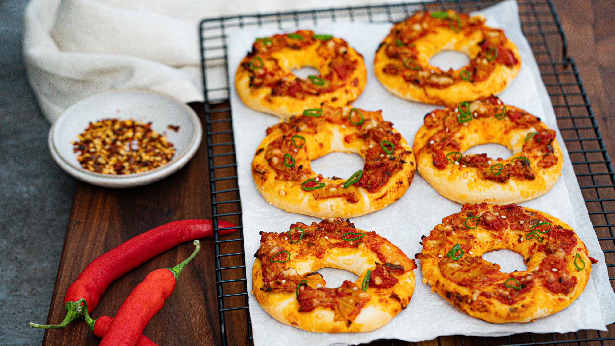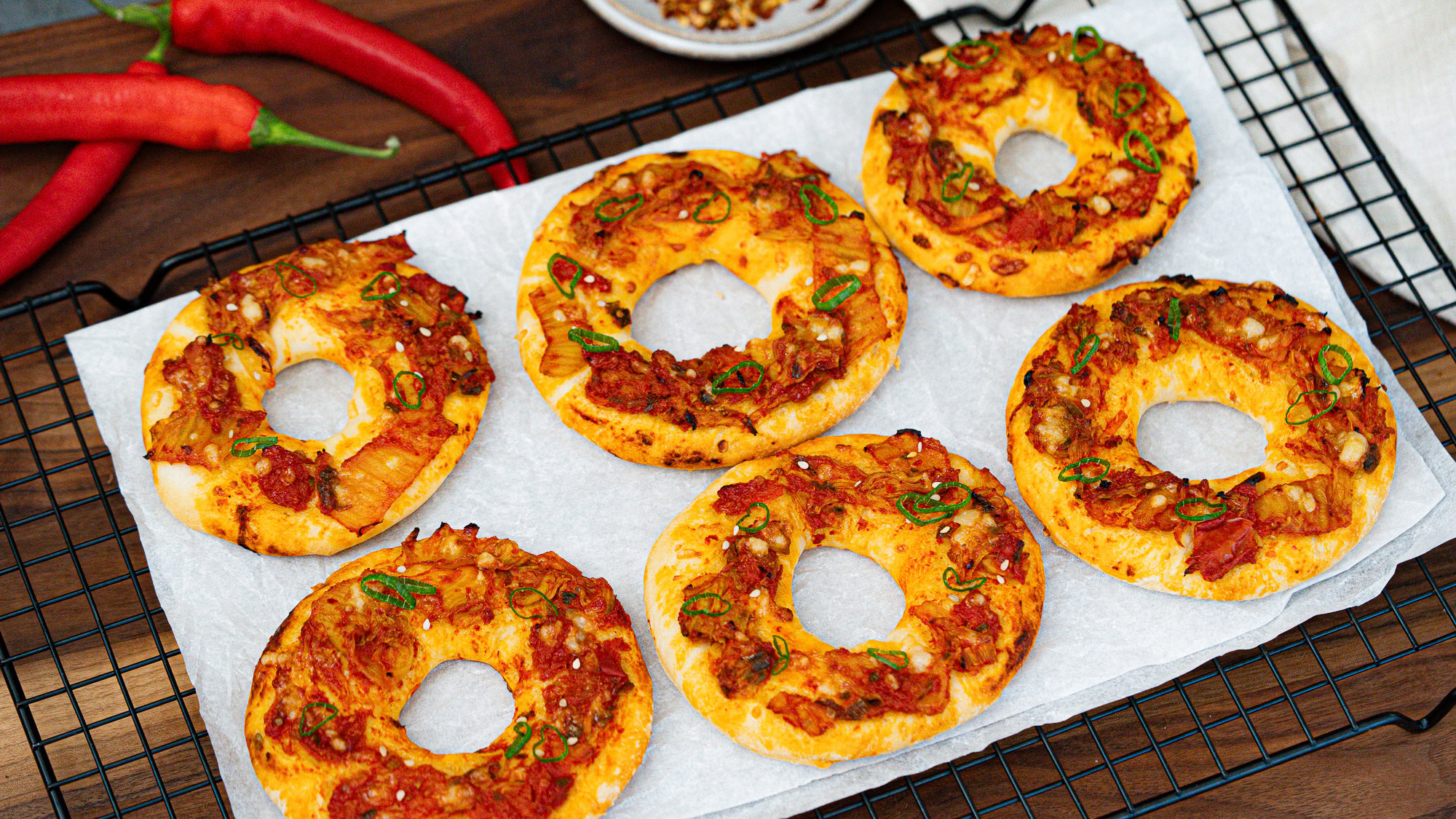 Si vous aimez tester des recettes un peu différentes, le bagel pizza au kimchi va vous plaire !