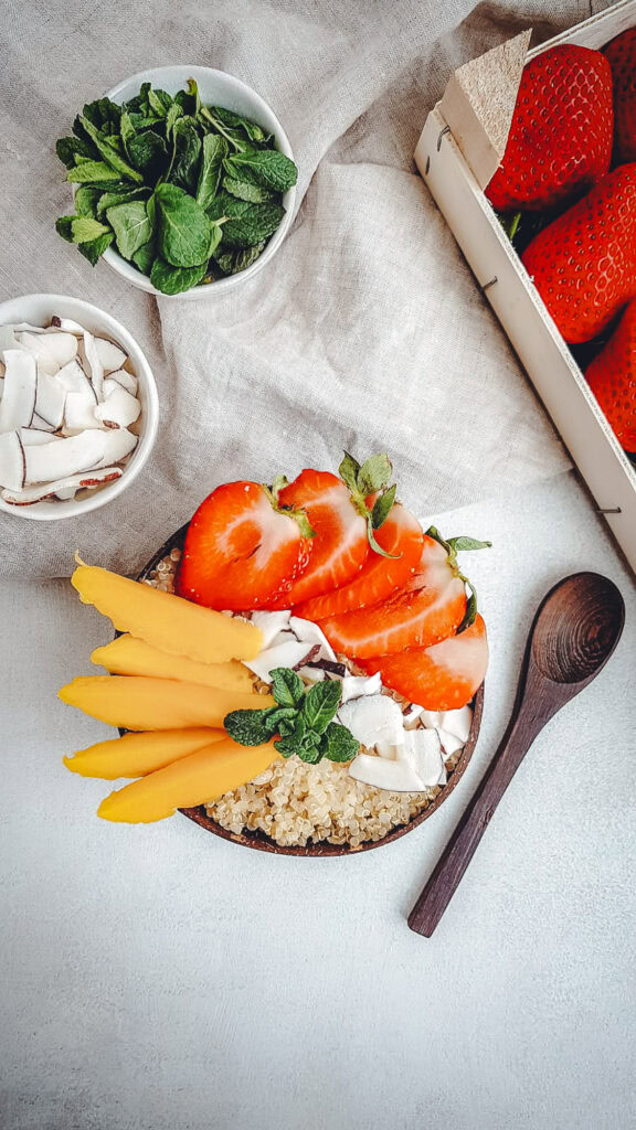 Je vous recommande de tester les petits déjeuners à base de riz, de quinoa, ou de millet cuits. Ce sont des ingrédients qui peuvent vous paraître étranges pour un petit déjeuner, mais c’est excellent et cela vous permet de mieux répartir votre glycémie dans la journée.
