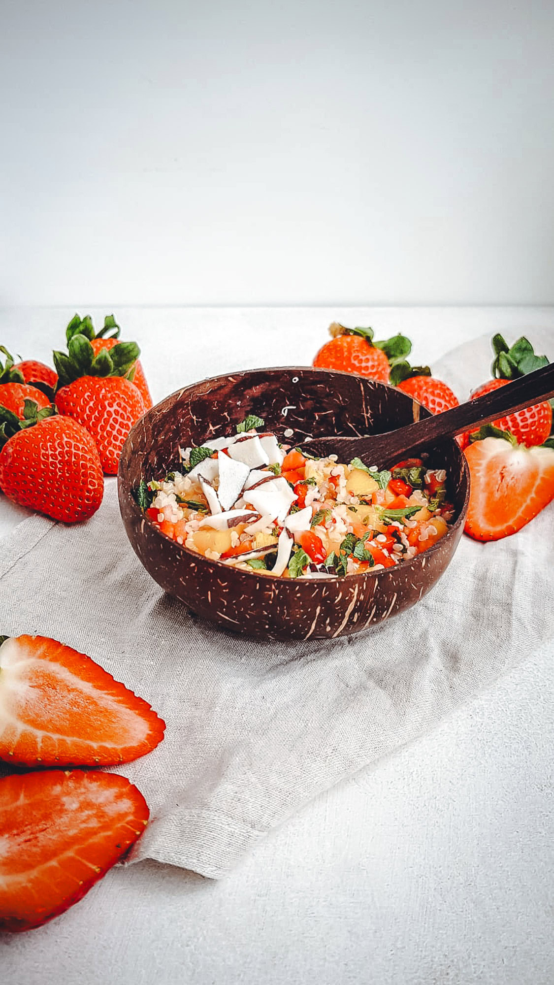 Je vous recommande de tester les petits déjeuners à base de riz, de quinoa, ou de millet cuits. Ce sont des ingrédients qui peuvent vous paraître étranges pour un petit déjeuner, mais c’est excellent et cela vous permet de mieux répartir votre glycémie dans la journée.