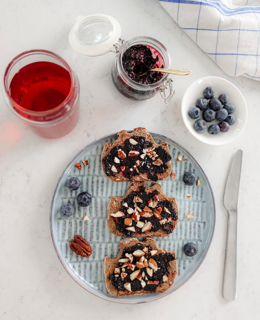 Accueil | Recettes | Petit-déjeuner | Tartines confiture de myrtilles et graines de chia
