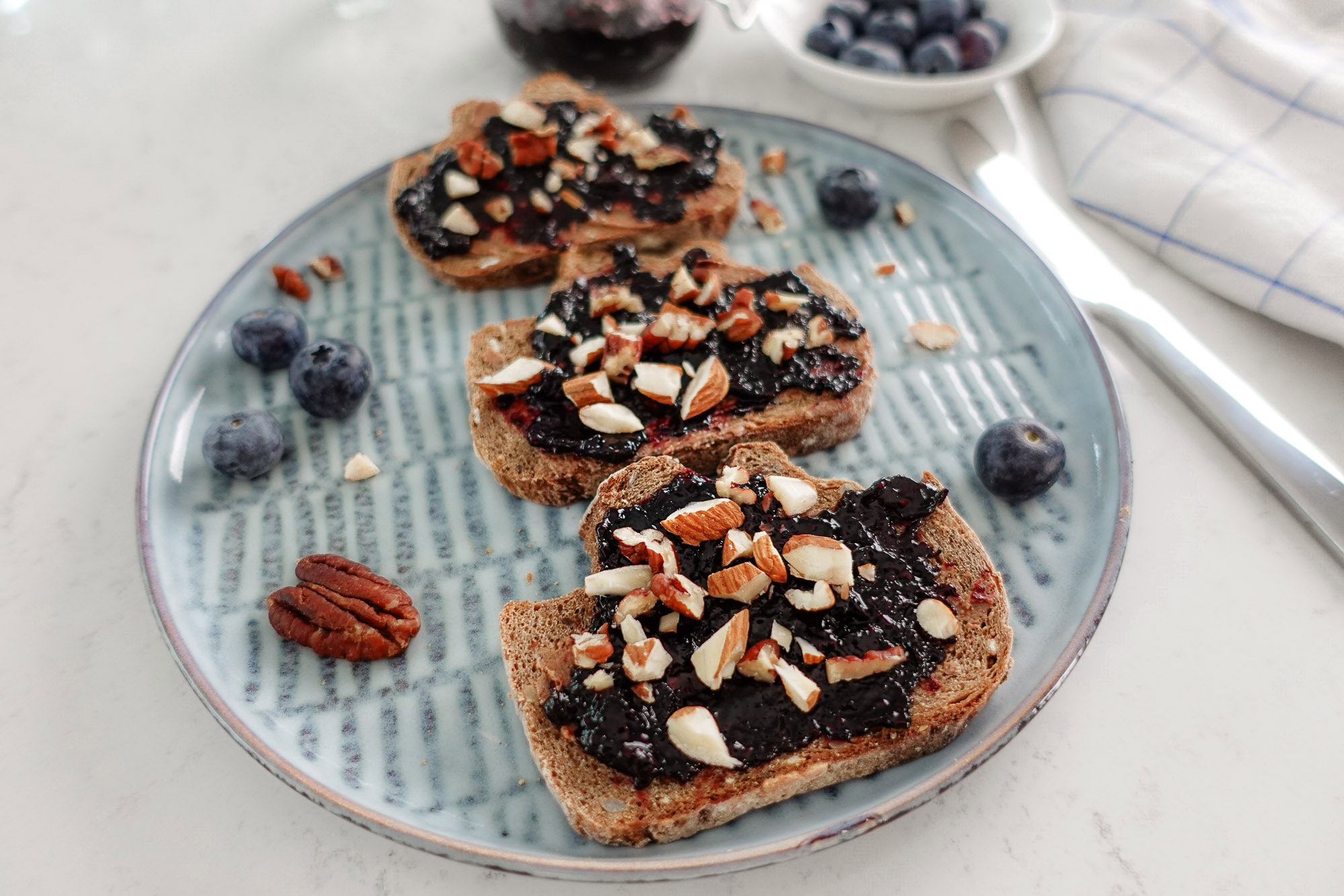 Accueil | Recettes | Petit-déjeuner | Tartines confiture de myrtilles et graines de chia