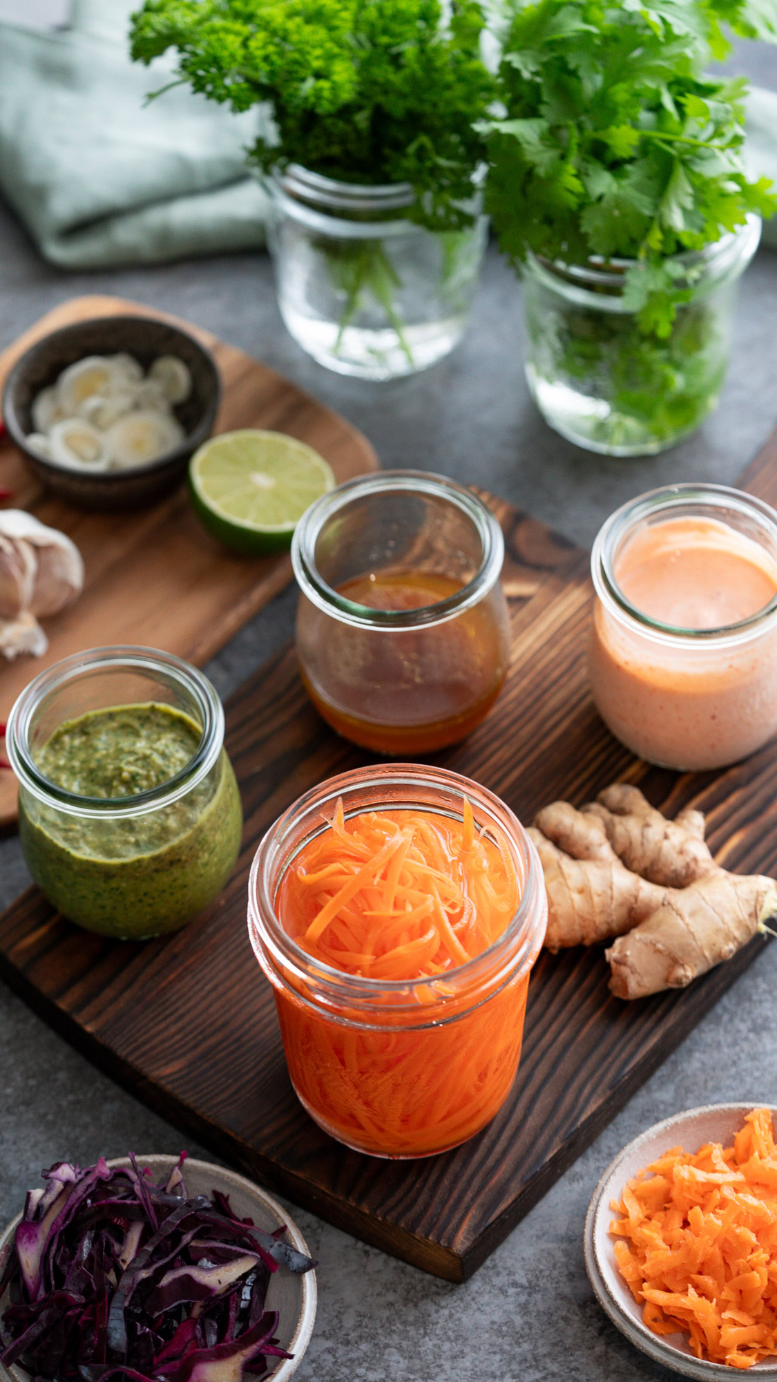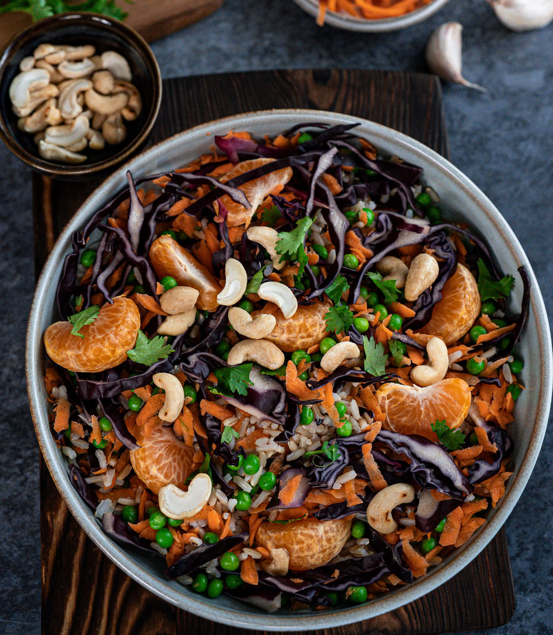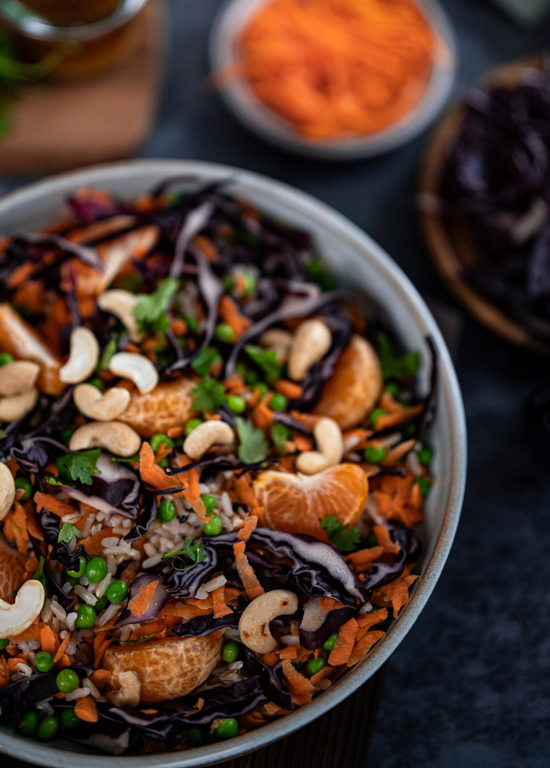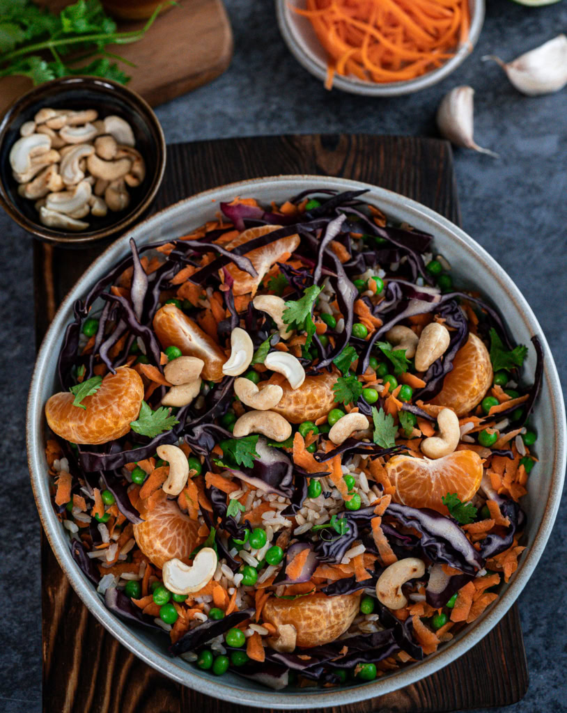 Découvrez une salade de riz originale qui allie la douceur acidulée de la mandarine à des légumes croquants et colorés. Associée au riz complet et à une sauce parfumée au gingembre, elle constitue un repas équilibré, parfait pour vos déjeuners rapides ou vos lunch boxes.