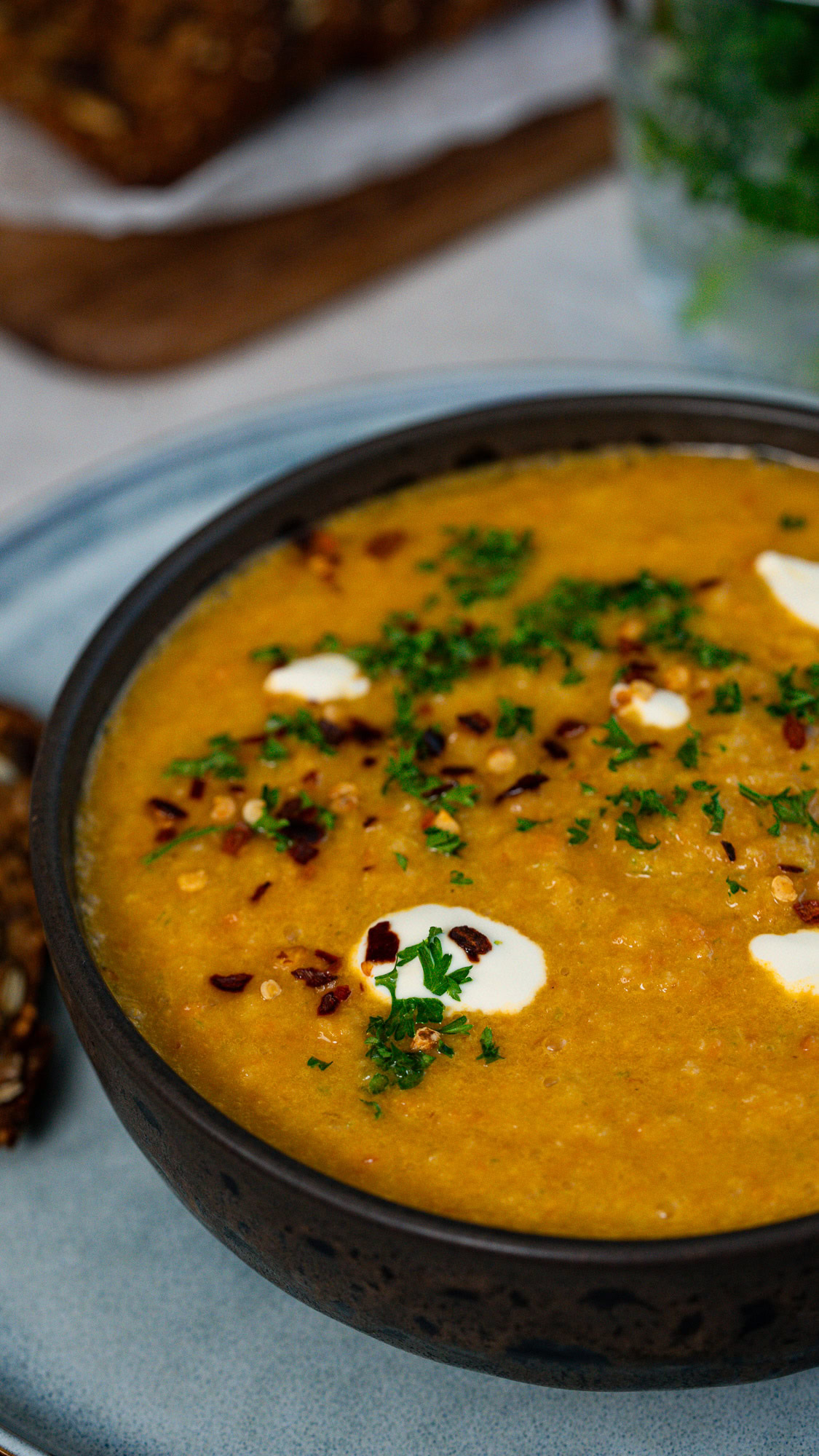 Vous pouvez servir la soupe avec des crackers aux graines maison.