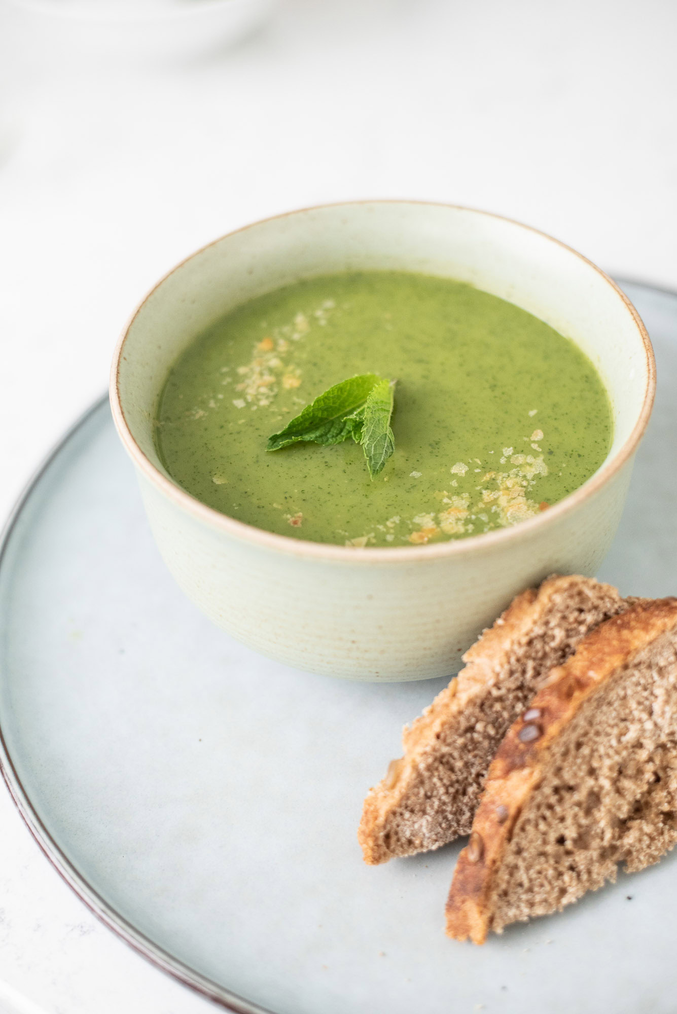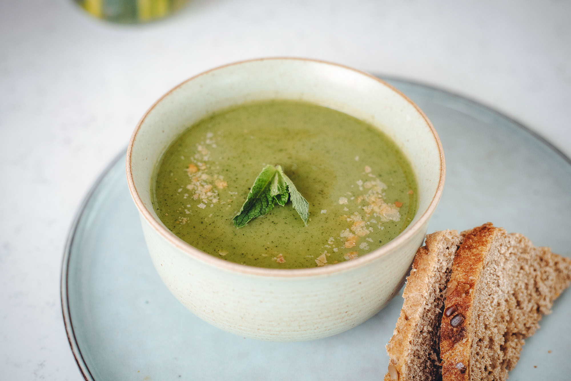 Une soupe froide à la courgette et à la menthe, toute simple, toute fraîche.